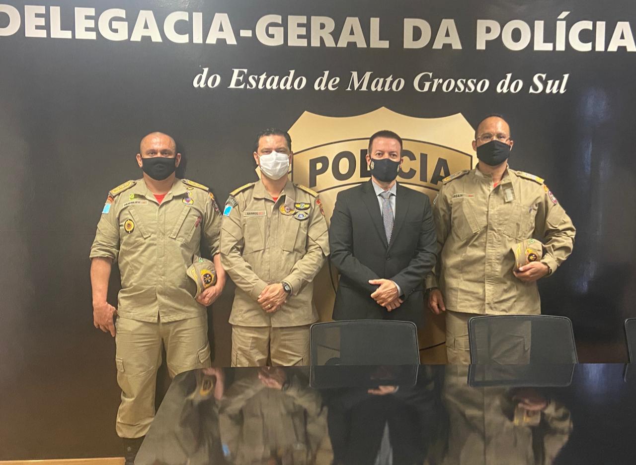 Na tarde de hoje (2), o Delegado Geral da Polícia Civil de Mato Grosso do Sul, Adriano Garcia Geraldo, recebeu a visita do Comandante Geral do Corpo de Bombeiros, Coronel Hugo Djan Leite, do Subcomandante, Coronel Artemison Monteiro de Barros e do Coronel