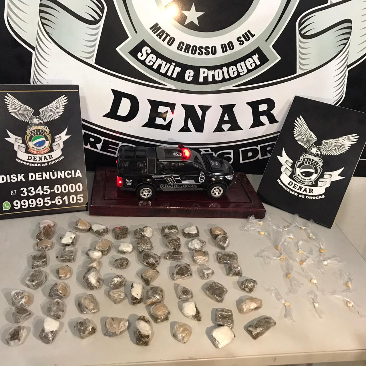 Campo Grande (MS): Na tarde de hoje (3), A Delegacia Especializada de Repressão ao Narcotráfico (Denar) prendeu um homem, de 26 anos, em flagrante por tráfico de drogas e apreendeu 57 porções de maconha, 18 de pasta-base, além de dinheiro trocado,