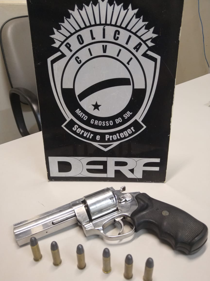 Campo Grande (MS): Agentes da Delegacia de Roubos e Furtos prenderam, hoje (29), em flagrante um homem por porte ilegal de arma de fogo, em Campo Grande. Ele portava um revólver calibre .22, três munições, sendo duas intactas e uma deflagrada. Os