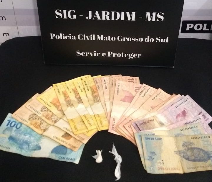 Paraíso das Águas (MS): Investigadores do Setor de Investigações Gerais da Polícia Civil de Paraíso das Águas apreenderam, nesta quarta-feira (9), trouxinhas de substância análoga a cocaína, um celular e dinheiro suspeitos de estar a serviço do