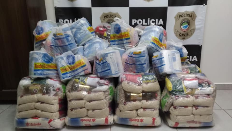 Paraíso das águas (MS): Na tarde desta sexta-feira (27), a Polícia Civil, por meio da Delegacia de Paraíso das Águas, formalizou a entrega de trinta cestas (15 de alimentos e 15 de produtos de limpeza) à Secretaria de Assistência Social do