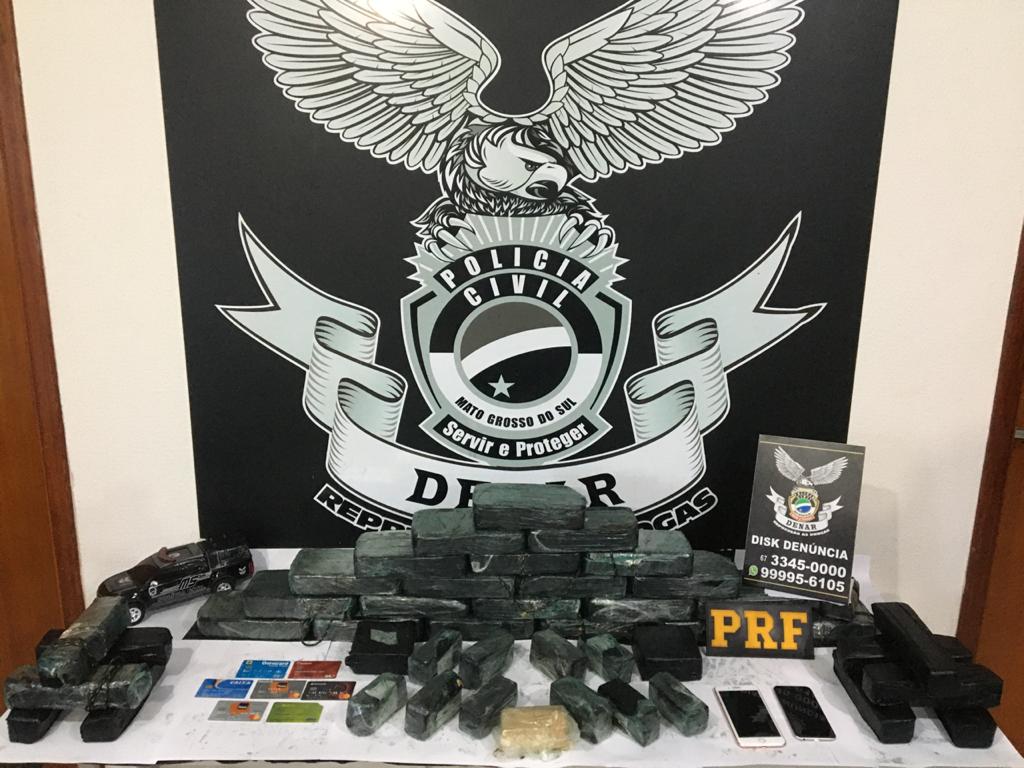 Campo Grande (MS): Na manhã desta terça-feira (20), equipes da Polícia Rodoviária Federal (PRF) e Delegacia Especializada de Repressão ao Narcotráfico (Denar) prenderam um casal transportando 46 tabletes de pasta-base de cocaína, que pesaram