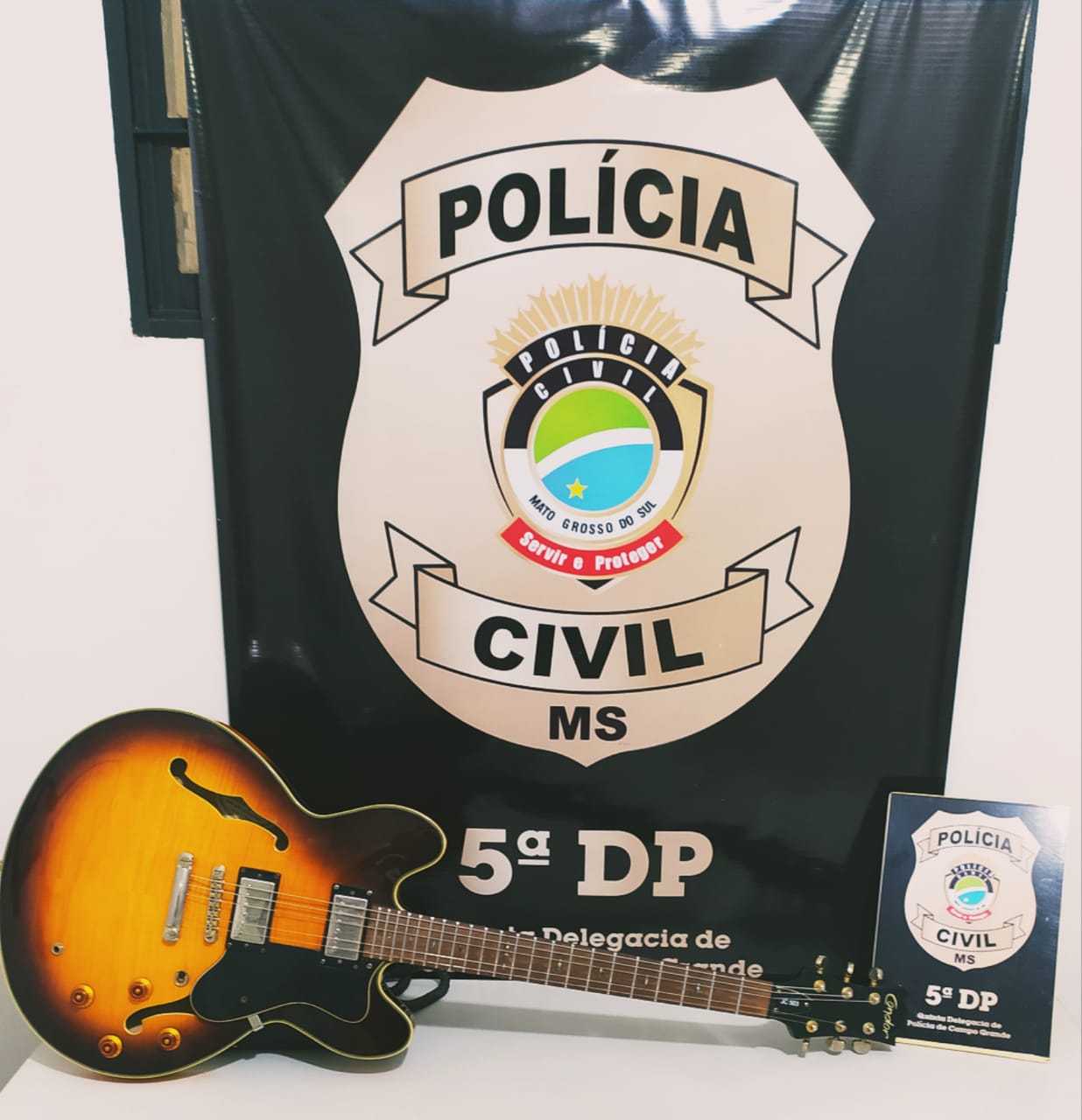Campo Grande (MS): Policiais civis da 5ª Delegacia de Polícia de Campo Grande recuperaram, nesta terça-feira (20), uma guitarra produto de furto que estava sendo anunciada para venda em uma página da rede social Facebook. Após recebimento de informação