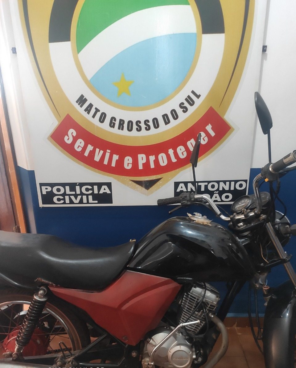 Antônio João (MS): Em diligências visando esclarecer crimes de roubos e furtos de veículos ocorridos na região, equipe de investigação da Delegacia de Polícia Civil de Antônio João apreendeu uma motocicleta que apresentava diferença entre os sinais