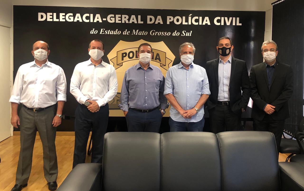 Campo Grande (MS): O Delegado-Geral da Polícia Civil – Marcelo Vargas Lopes e o Delegado-Geral Adjunto – Adriano Garcia Geraldo receberam, na manhã desta terça-feira (8), a visita de Rudel Espíndola Trindade Júnior, Presidente do