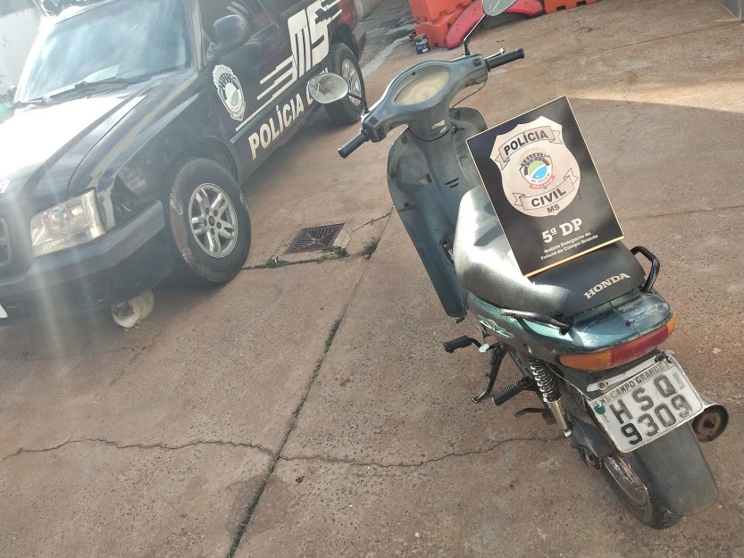 Campo Grande (MS): Na tarde de segunda-feira (30), Investigadores do Setor de Investigações Gerais da 5ª Delegacia de Polícia localizaram um suspeito pelo furto de uma motocicleta, na região do bairro Piratininga. Durante diligências, os policiais