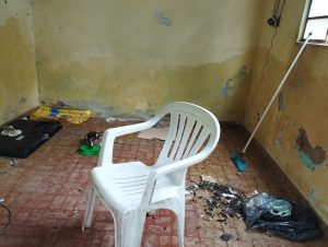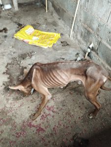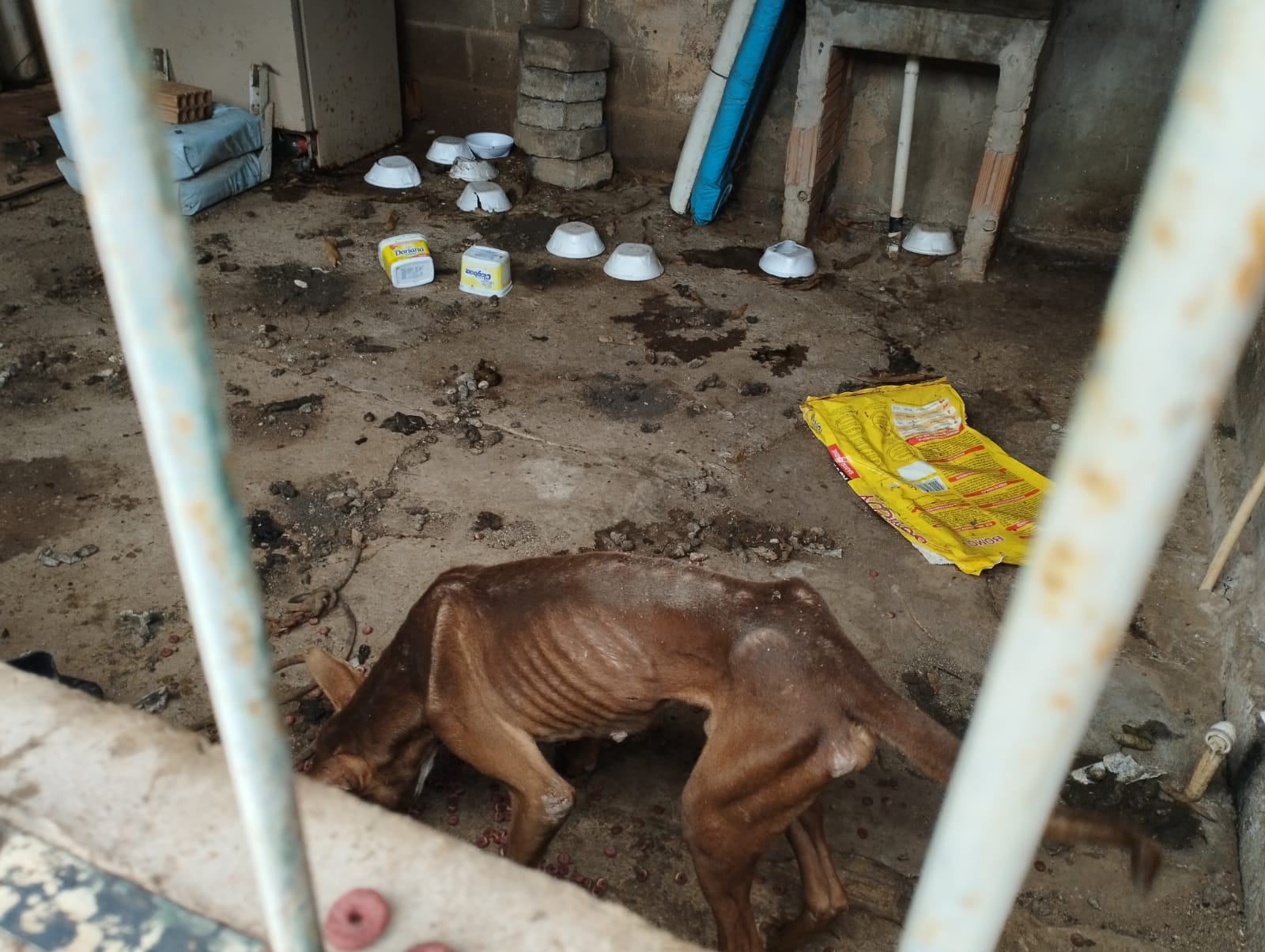Com o apoio da gerência do Bem Estar Animal, os agentes se dirigiram ao local indicado, onde foram recebidos por um vizinho que relatou a existência de um cachorro de grande porte mantido em um ambiente fechado e insalubre. O animal apresentava extrema magreza, apatia, falta de pelos e infestação por parasitas, em meio a fezes, entulhos e restos de animais.