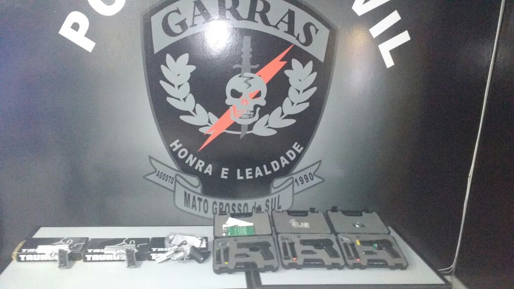 Campo Grande (MS): Na última quarta-feira (19), o Exército Brasileiro em operação conjunta com a Polícia Civil, através do GARRAS–Del. Esp. Rep. a Roubos a Banco, Assaltos e Sequestros, prendeu três pessoas C.F.S (47), R.G (43), P.J.S.S (33), pelo crime de posse irregular de arma de fogo de uso restrito e por expor à venda acessório de arma de fogo sem documentação legal e apreendeu diversas armas de fogo e réplicas.