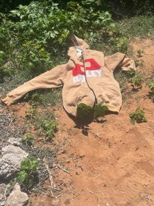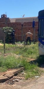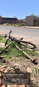 Questionado sobre o moletom e a bicicleta utilizados no momento do furto, L. F. R. D. S. indicou que havia escondido os objetos em um terreno baldio próximo à sua residência. As equipes deslocaram-se até o local, sendo o moletom localizado em um terreno e, poucos metros à frente, também foi localizada a bicicleta.