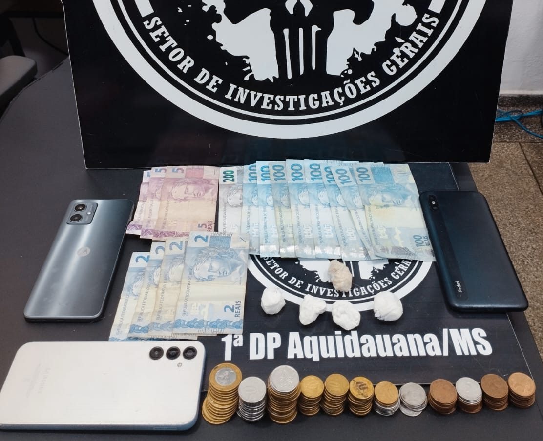Além disso, foi apreendida uma quantia de R$ 1.250,50, composta por moedas e cédulas. Também foram apreendidos três aparelhos celulares e um caderno de anotações, evidenciando movimentação financeira possivelmente relacionada ao comércio de substâncias entorpecentes.