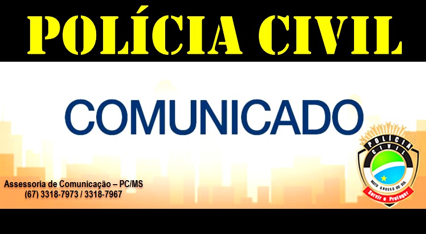 LADÁRIO (MS): A Polícia Civil de Ladário informa que em decorrência das fortes chuvas e tempestades, a Delegacia de Polícia se encontra sem internet, o que impossibilita o atendimento ao público e registro de ocorrências. As providências estão sendo