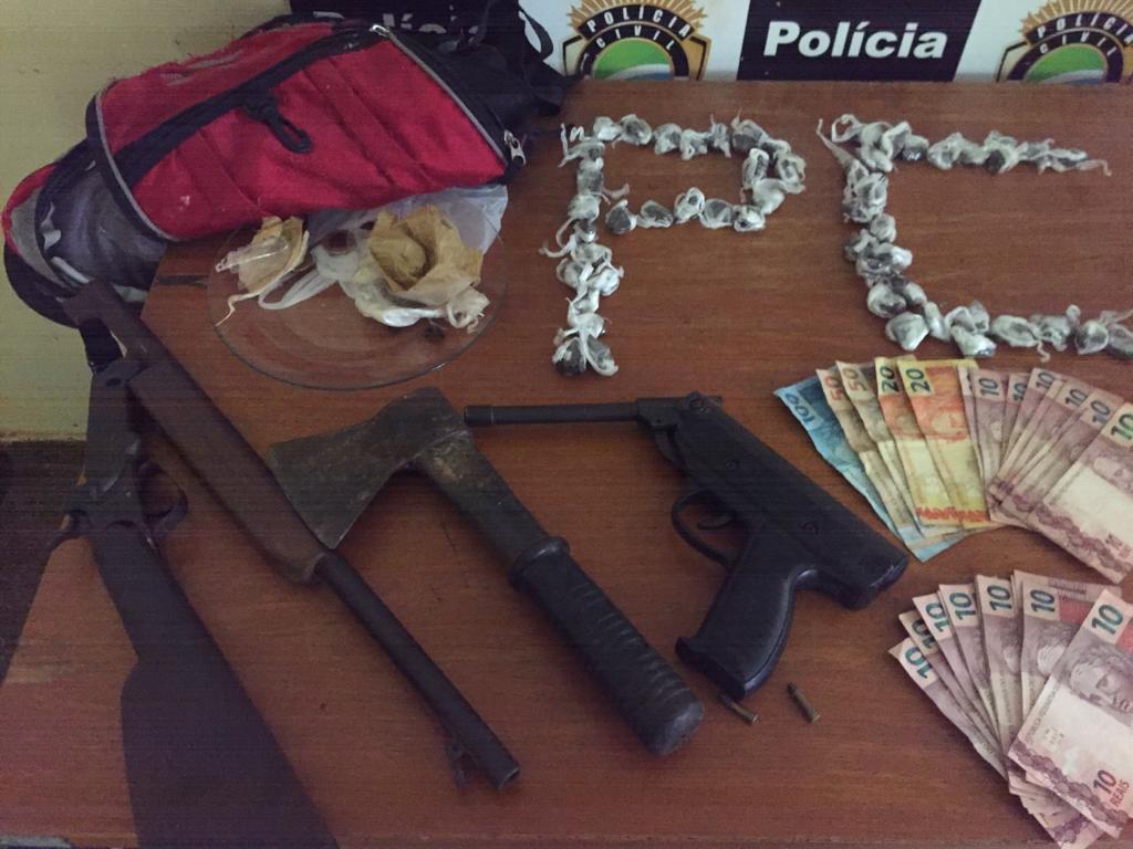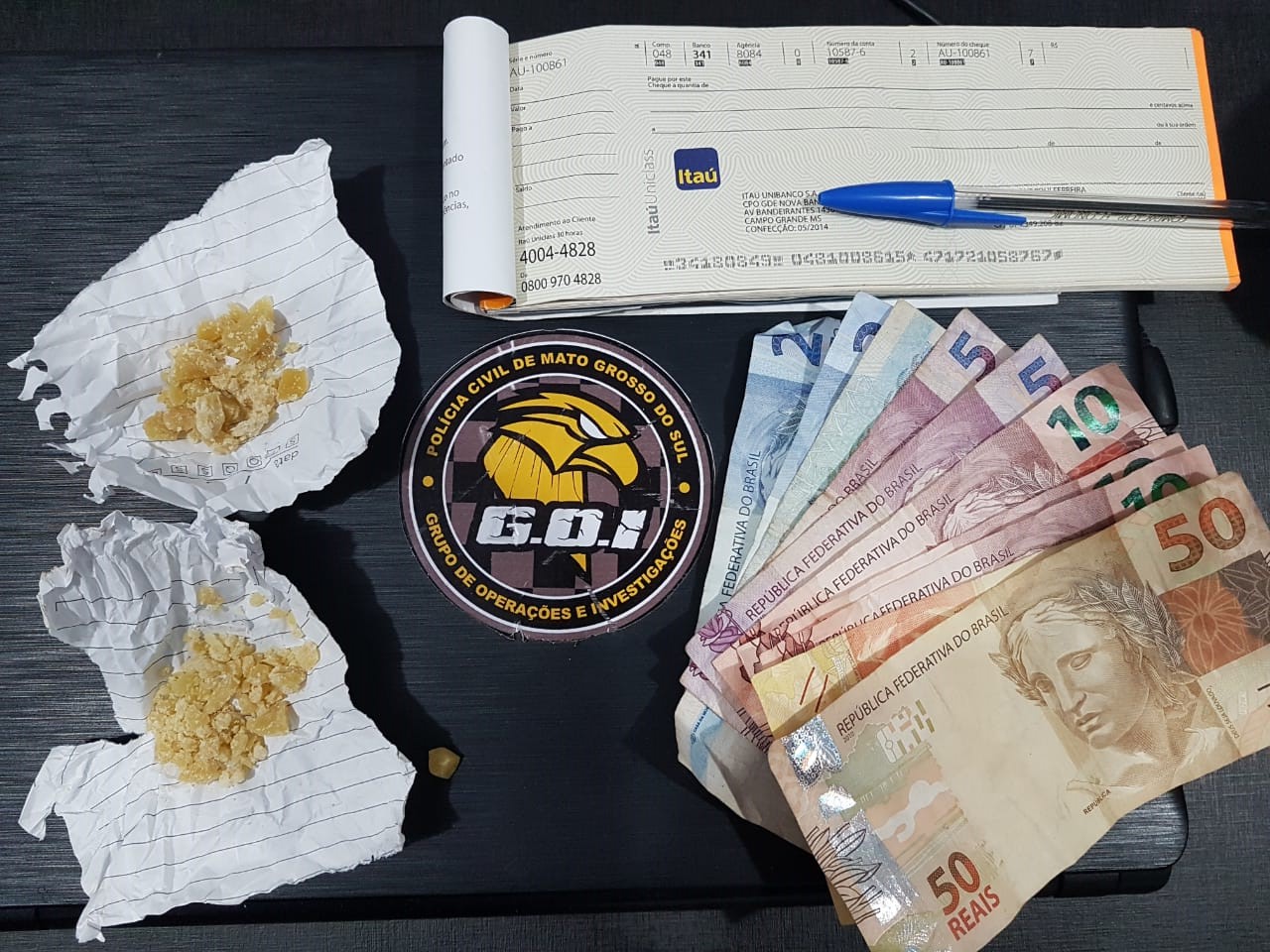JARAGUARI (MS): A Polícia Civil Jaraguari prendeu, na região central do município, na manhã desta quarta-feira (13), dois homens em flagrante pelos crimes de Tráfico de Drogas e Posse Irregular de Arma de Fogo. A prisão aconteceu durante apuração de