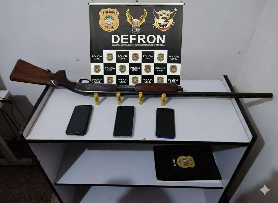 As diligências resultaram na apreensão de uma arma de fogo na cidade de Ponta Porã, encaminhada para o 1º Distrito Policial local, onde serão adotadas as medidas legais e periciais cabíveis.