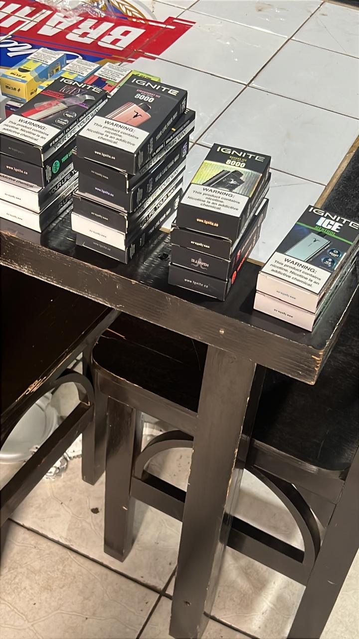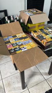 Durante a ação, foram apreendidos 164 frascos de bebidas alcoólicas importadas, incluindo marcas como Jack Daniel’s, Buchanan’s, Old Parr, Chivas, Ballantine’s, Johnnie Walker, White Horse e Gin Tanqueray, além de cachaças artesanais. Também foram recolhidas 921 unidades de essência de narguilé, 24 cigarros eletrônicos de diversas marcas e 20 maços de cigarros contrabandeados, configurando crimes contra a saúde pública e contrabando.