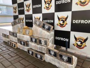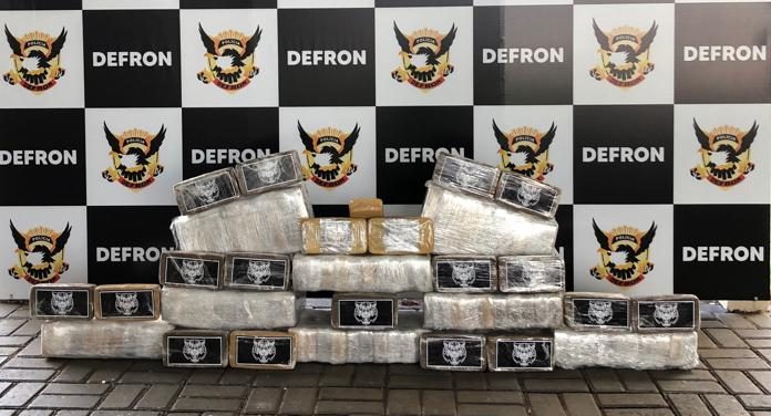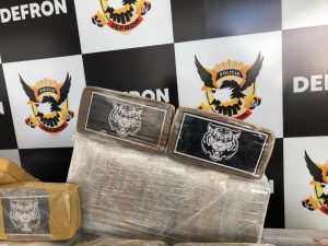 Ao se aproximarem do carro os policiais já notaram forte odor de produto químico. Ao iniciar a verificação, foram encontrados 10 fardos contendo tabletes de pasta base de cocaína, totalizando 106Kg. Após a identificação e constatação do material ilícito, o autor foi encaminhado até a sede do DEFRON, onde foi autuado em flagrante por tráfico de drogas.