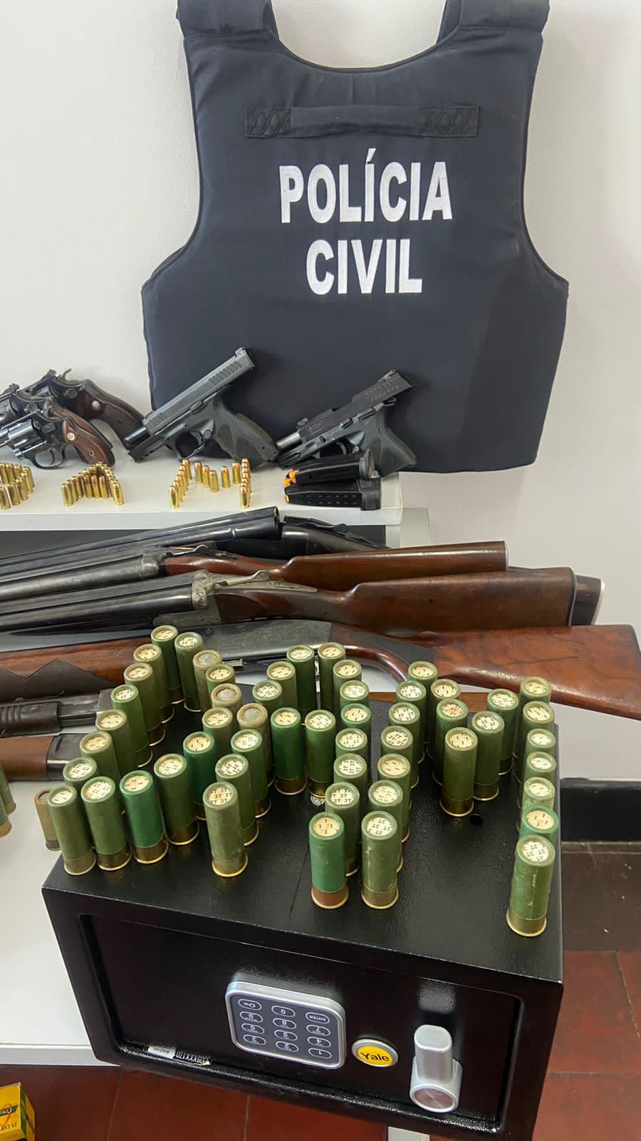 Na última quarta-feira, (31), a Polícia Civil, por intermédio da Delegacia de Atendimento à Mulher (DAM) de Corumbá realizou operação, juntamente com a 1ª Delegacia, Del. Especializada de Atendimento à Infância e Juventude (DAIJI) e Delegacia de Polícia de Ladário e cumpriu mandado de busca e apreensão de arma de fogo, logrando êxito em localizar um cofre contendo um total de 10 armas de fogo e uma outra arma modelo Pistola em uma gaveta de um imóvel residencial localizado na cidade de Corumbá.
