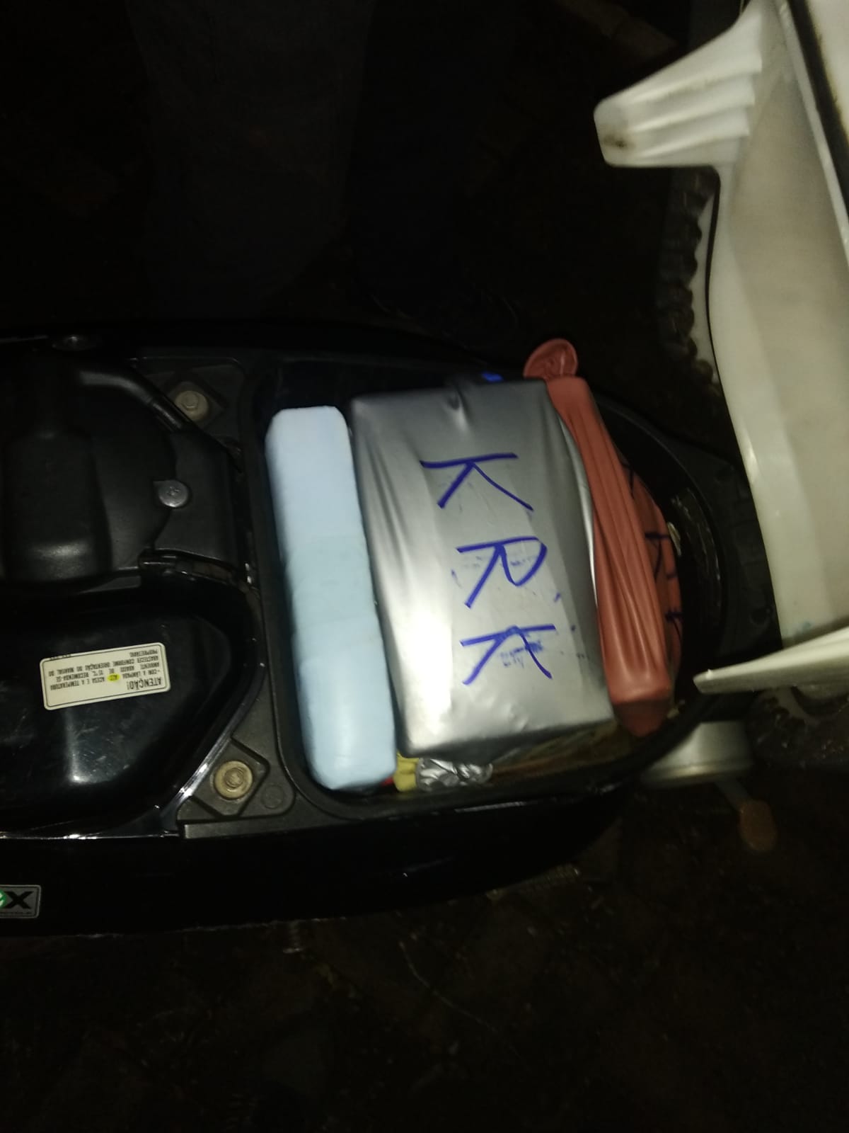 Os suspeitos fugiram, mas a droga foi apreendida. Foram recolhidos 13 tabletes, sendo aproximadamente 2.100 kg de pasta base e 12.400 kg de cocaína.