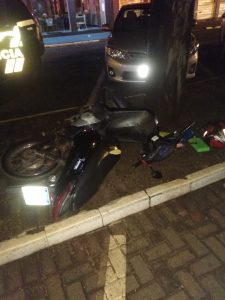 Os policiais perseguiram os autores, que conduziam a moto pela contra mão gerando perigo à própria vida e de terceiros, vindo a bater a motocicleta no meio-fio, na avenida Brasil.