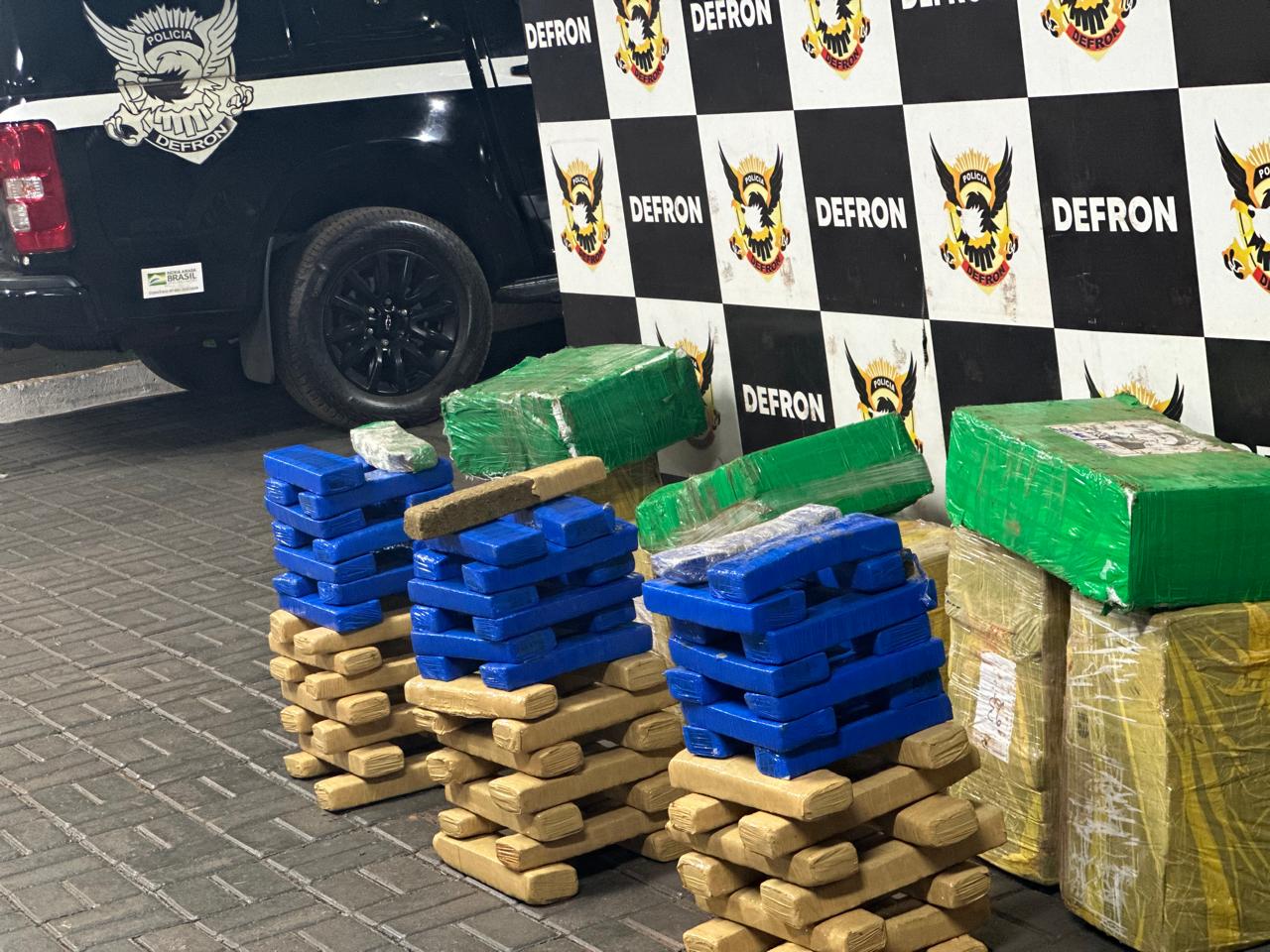 Dentro do barracão, foram apreendidos vários fardos de maconha, totalizando 277 kg. Além disso, havia no local uma balança industrial e rolos de plástico filme, deixando claro que o endereço estava sendo utilizado exclusivamente para tráfico de drogas, servindo como entreposto.