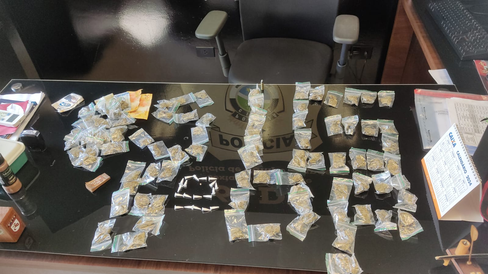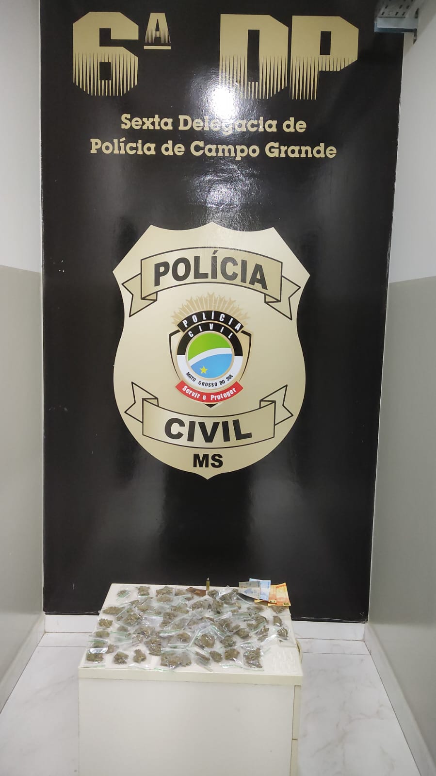 Polícia Civil apreende 81 porções de maconha e 19 pinos de cocaína no bairro Tijuca, em Campo Grande