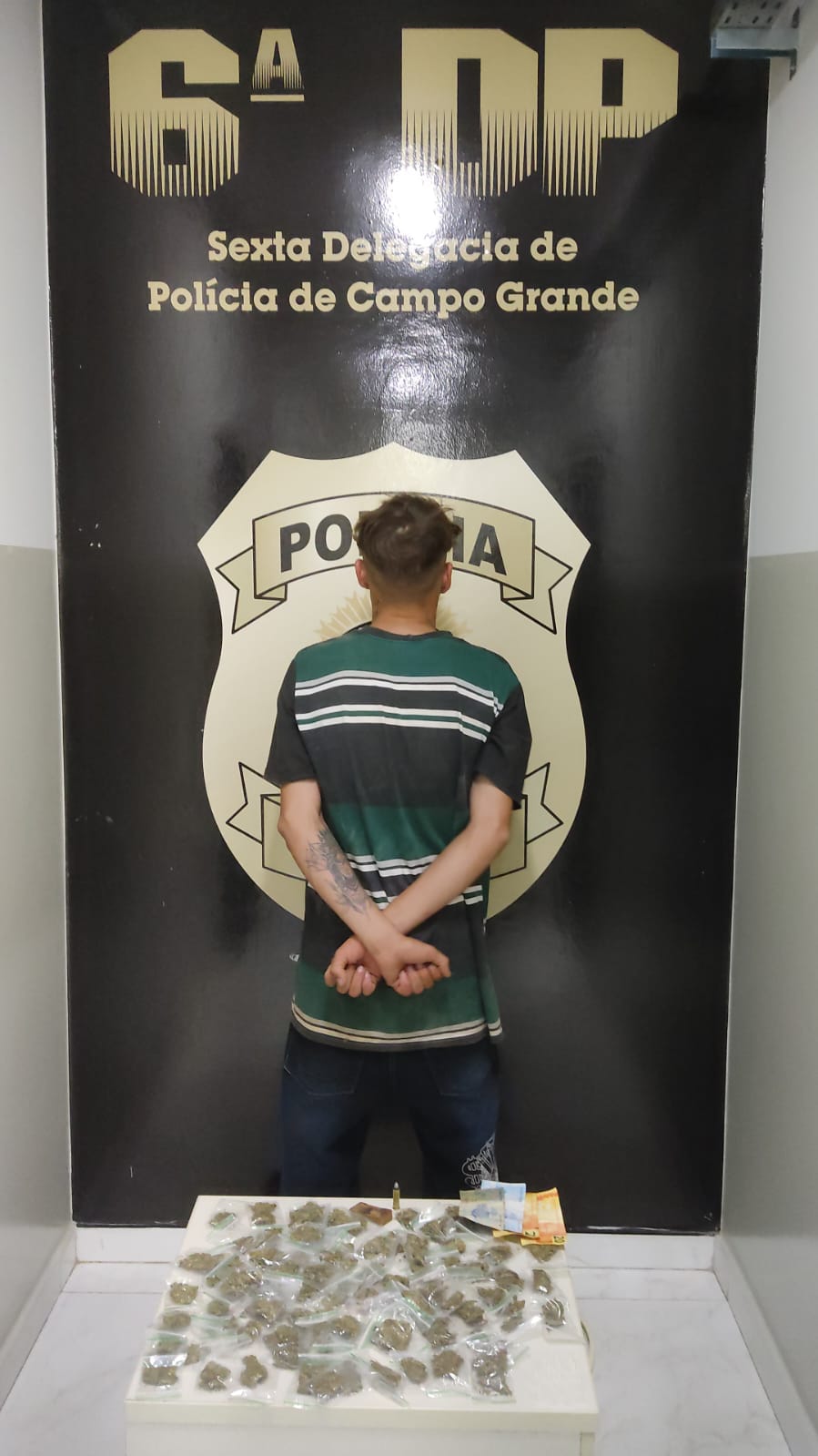 Durante a execução da operação “Padrão”, a 6ª Delegacia de Polícia Civil de Campo Grande-MS realizou uma prisão em flagrante por tráfico de drogas e apreendeu entorpecentes, munição e dinheiro, na região do Lagoa, na capital sul-mato-grossense.