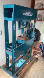 Na lavanderia do local, os policiais identificaram uma prensa hidráulica para formatar os “tijolos de maconha”.