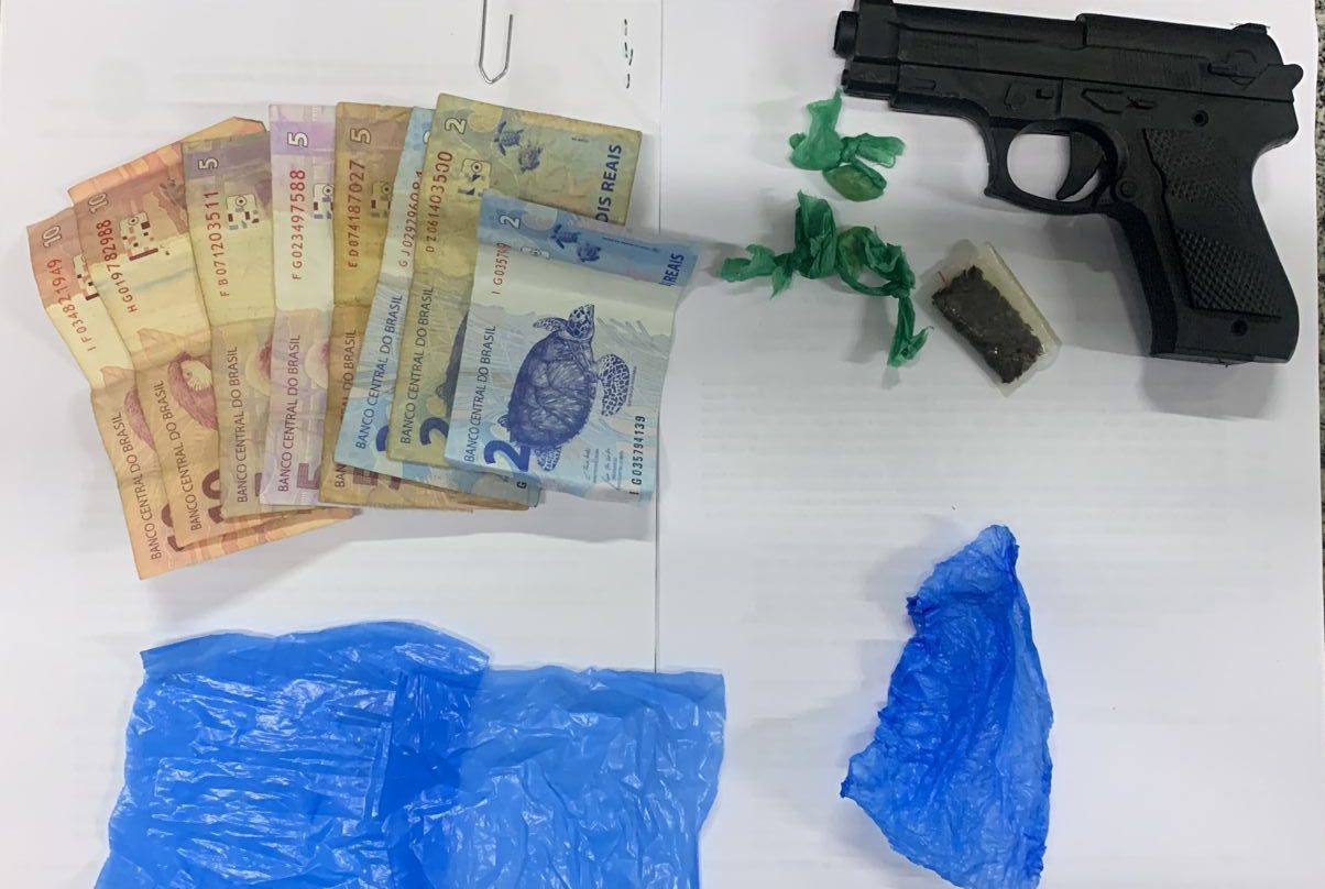 Diante da situação flagrancial, os indivíduos foram abordados, sendo localizada com o usuário, uma porção de maconha, e com o adolescente infrator, três invólucros com substância idêntica, além de R$ 41,00 em notas fracionadas.