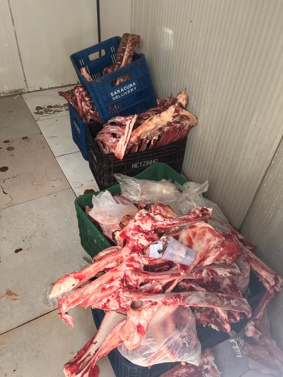 No interior da câmara havia ossos, medula, cuja venda é vedada. Foram apreendidos 671kg de carne e 294 ovos, inclusive carne embalada pronta para ser despachada.