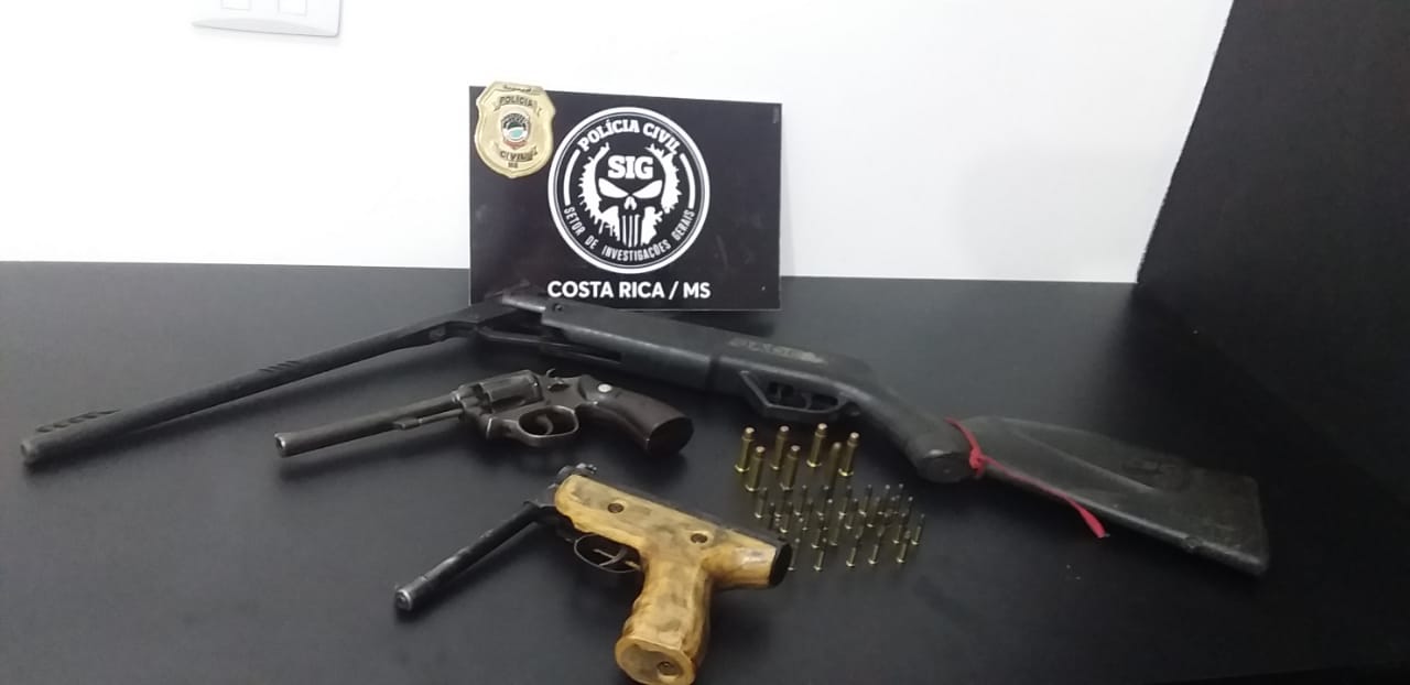 A Polícia Civil, por meio da Seção de Investigações Gerais (SIG), da Delegacia de Costa Rica, realizou uma diligência na manhã desta quinta-feira, 18/05, que resultou na apreensão de quatro armas de fogo de uso permitido e diversas munições. Três pessoas foram conduzidas para a Delegacia de Polícia para prestar esclarecimentos.