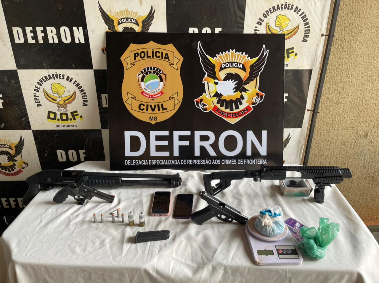 Dourados (MS): Policiais da Delegacia de Repressão aos Crimes de Fronteira – Defron realizaram a apreensão de pasta base de cocaína, três armas de fogo, uma delas com acessório de uso restrito, recupera automóvel furtado e apreende desviados de uma transportadora, nesta manhã quinta-feira (6).