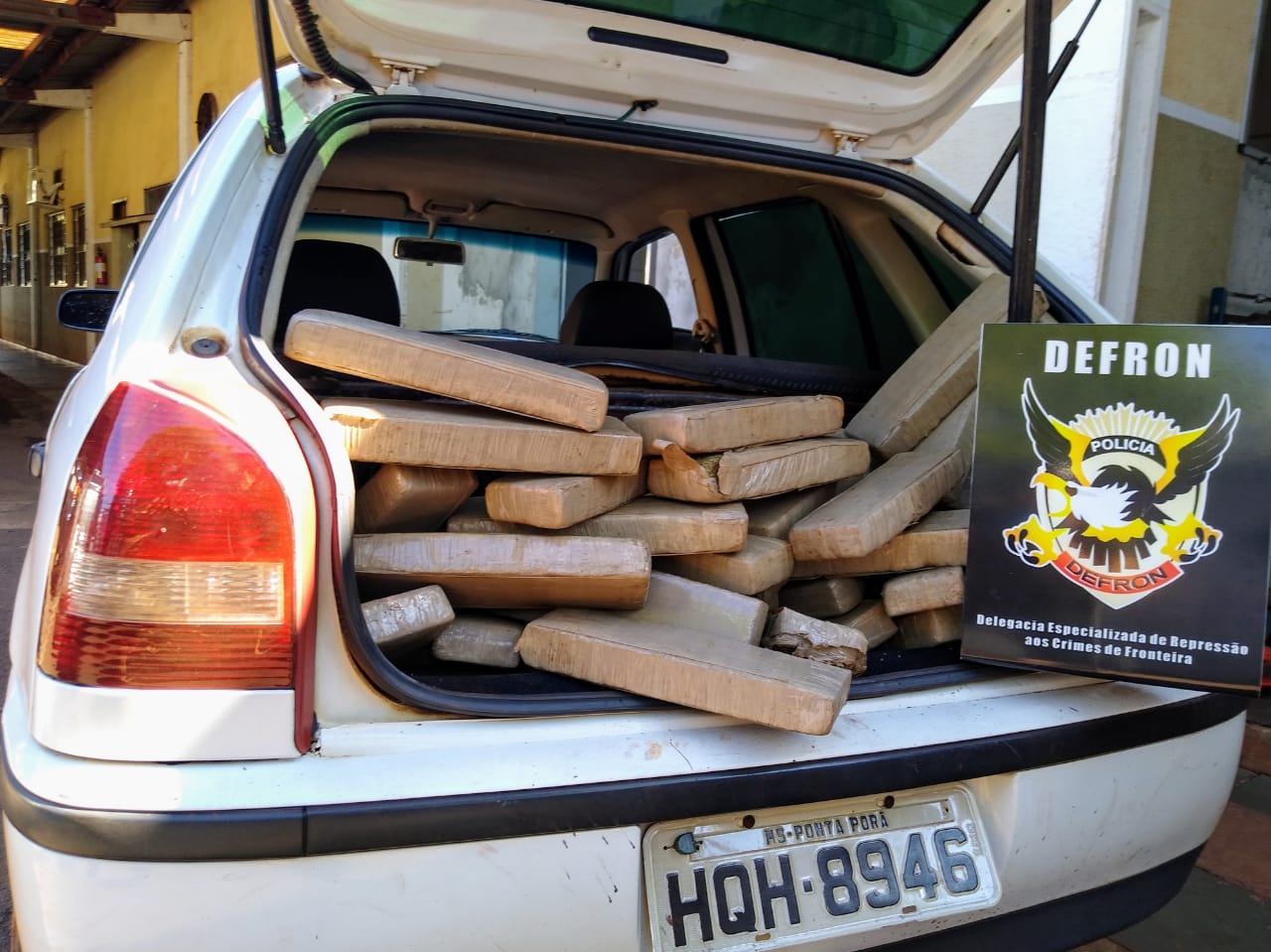 Os policiais realizaram então uma diligência para averiguar a situação deste segundo veículo, vindo a encontrar o carro carregado com diversos tabletes de maconha em uma residência em Dourados. Após a pesagem, a droga totalizou 72 kg.