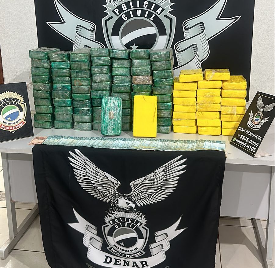 A Polícia Civil, por intermédio da DENAR (Delegacia Especializada na Repressão ao Narcotráfico) apreendeu na noite desta quinta-feira, 21/09, 100kg de cocaína, na Vila Cidade Morena em Campo Grande-MS. Um homem de 57 anos foi preso em flagrante por tráfico de drogas.