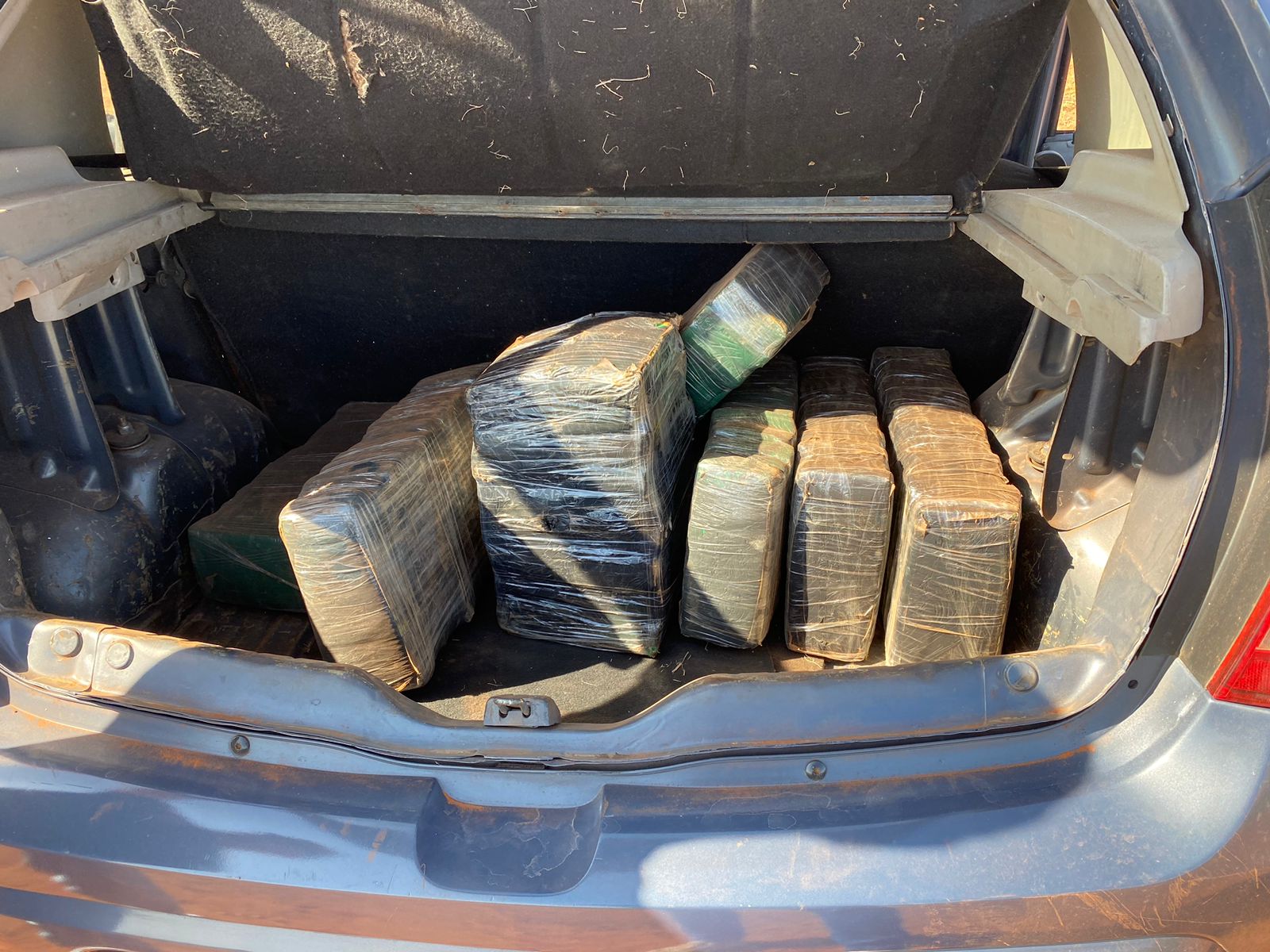 Em vistoria ao veículo, foram encontrados diversos fardos de maconha. Apesar da fuga, o motorista foi identificado pela equipe.