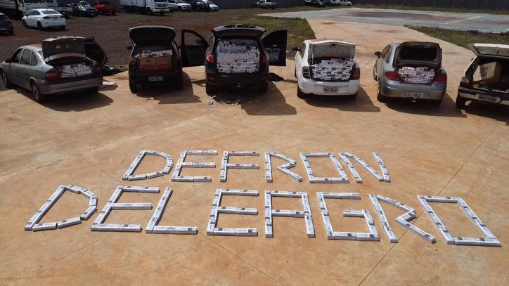 Em inspeção nos automóveis, foram localizados em todos os carros muitos pacotes de cigarros de origem paraguaia. Desse modo, todos os carros, juntamente com os cigarros contrabandeados, foram encaminhados para a sede da DEFRON, no município de Dourados/MS.
