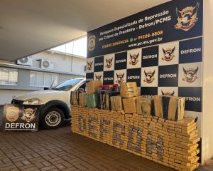 Com esses dados, os policiais foram até o local, sendo que após algum tempo visualizaram o procurado abrindo o portão da frente e saindo na calçada, momento em que o abordaram e informaram que ele estava com um mandado de prisão em aberto. Na área da casa, bem próximo da calçada, havia um veículo Fiat Strada, de cor branca, que exalava cheiro de maconha. Em vistoria constatou-se que a carroceria do automóvel estava cheia de tabletes do entorpecente.