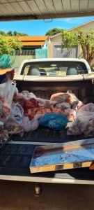Após levantamento dos mercados que estavam atuando em desacordo com a legislação, as referidas instituições foram até o mercado de J.F.F. (44) e apreenderam carne clandestina, linguiça artesanal, sem autorização do Serviço de Inspeção Municipal (SIM), com apreensão e descarte de 461,70kgs. No segundo endereço pertencente a S.B.Q.J. (35), apreendeu-se carne clandestina, alimentos vencidos, cujo descarte somou 258 Kgs.
