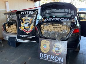 Após vistoriarem o veículo, os policiais identificaram grande quantidade de maconha e skunk em seu interior, além de um segundo automóvel, um GM Prisma, estacionado no imóvel. Dentro dele havia grande quantidade das mesmas drogas, e ainda constou restrição de roubo/furto desse veículo.