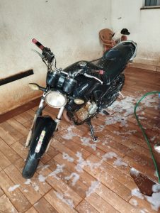 Diligências continuam com o objetivo de identificar o autor das adulterações do chassi e do motor e, após exame pericial de identificação veicular, possivelmente identificar a quem pertence a motocicleta.