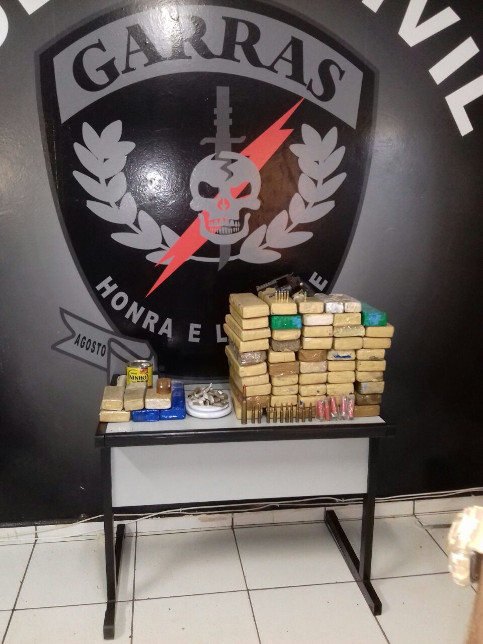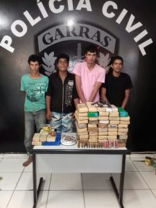 Diante dos fatos, os conduzidos foram encaminhados a sede do GARRAS, onde foram autuados em flagrante por tráfico de drogas, posse irregular de uso permitido, posse de arma de fogo de uso restrito e associação criminosa.