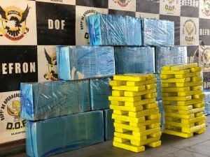 O carro estava carregado de maconha, sendo que as centenas de tabletes totalizaram 327 kg. O que chamou a atenção é que para driblar a fiscalização policial, os homens utilizavam adesivos de empresa no veículo. De acordo com a autoridade policial, as investigações para identificar os proprietários continuam.