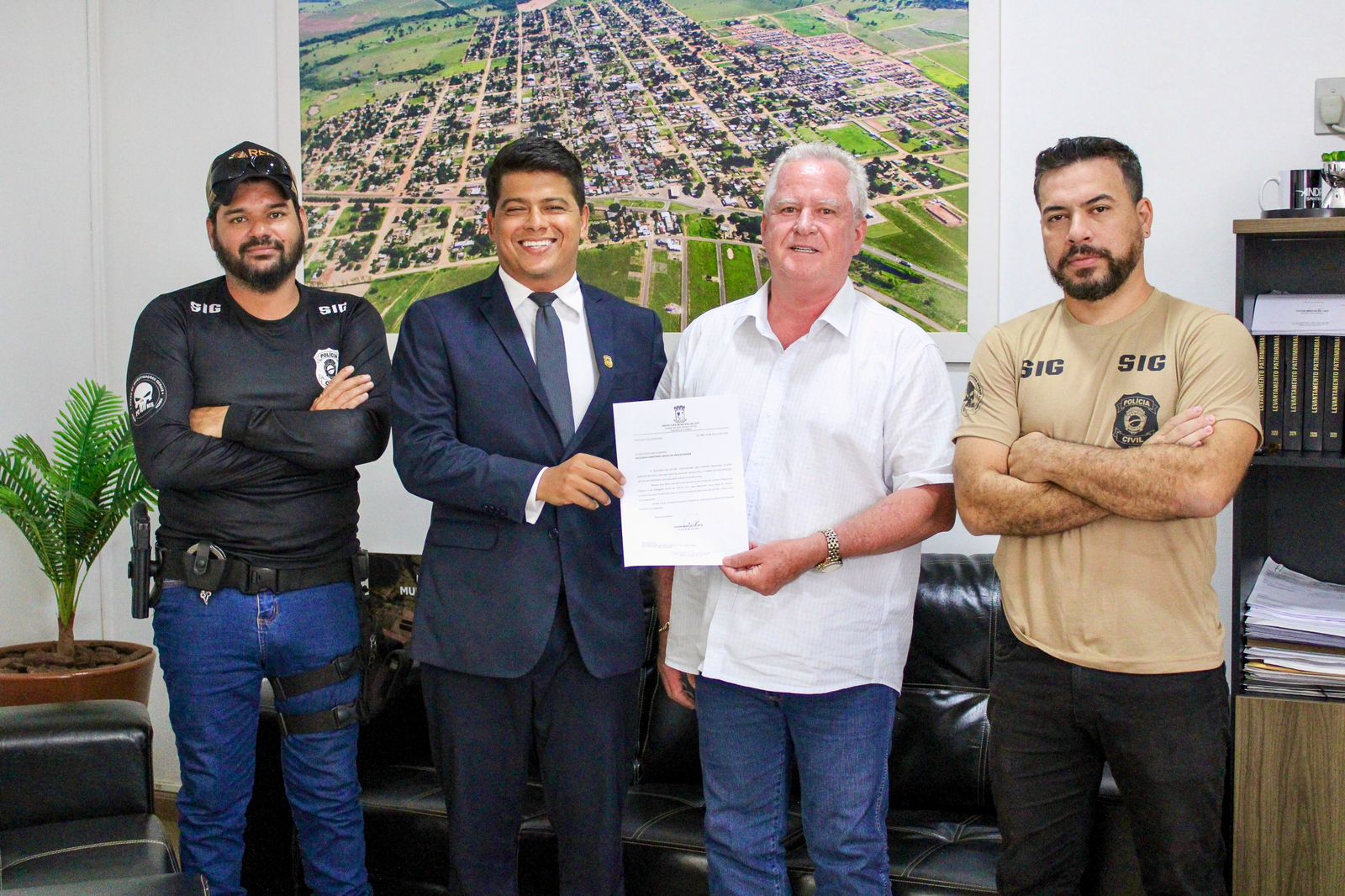 Nesta sexta-feira (22), o Delegado-Geral da Polícia Civil, Roberto Gurgel de Oliveira Filho, oficializou a assinatura de um termo de cooperação. O acordo, firmado entre o município de Juti, a Secretaria de Estado de Justiça e Segurança Pública (SEJUSP) e a Delegacia de Polícia Civil, tem como objetivo primordial a reforma e ampliação das instalações da Delegacia de Polícia Civil de Juti, visando a implementação da tão necessária “Sala Lilás”.