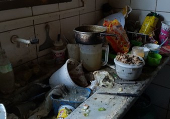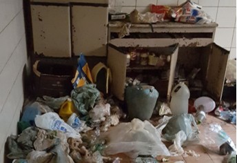 Em face à gravidade das acusações, a equipe da Especializada se dirigiu ao local,  onde também compareceram  agentes de saúde e fiscais sanitários do CCZ,   constatando-se a veracidade de parte das denuncia, ou seja, ambiente impróprio para moradia, com fezes no quintal, odor fétido insuportável, restos de  alimentos em estado de decomposição e putrefação, inclusive com presença de larvas e mosquitos dentro da cozinha.