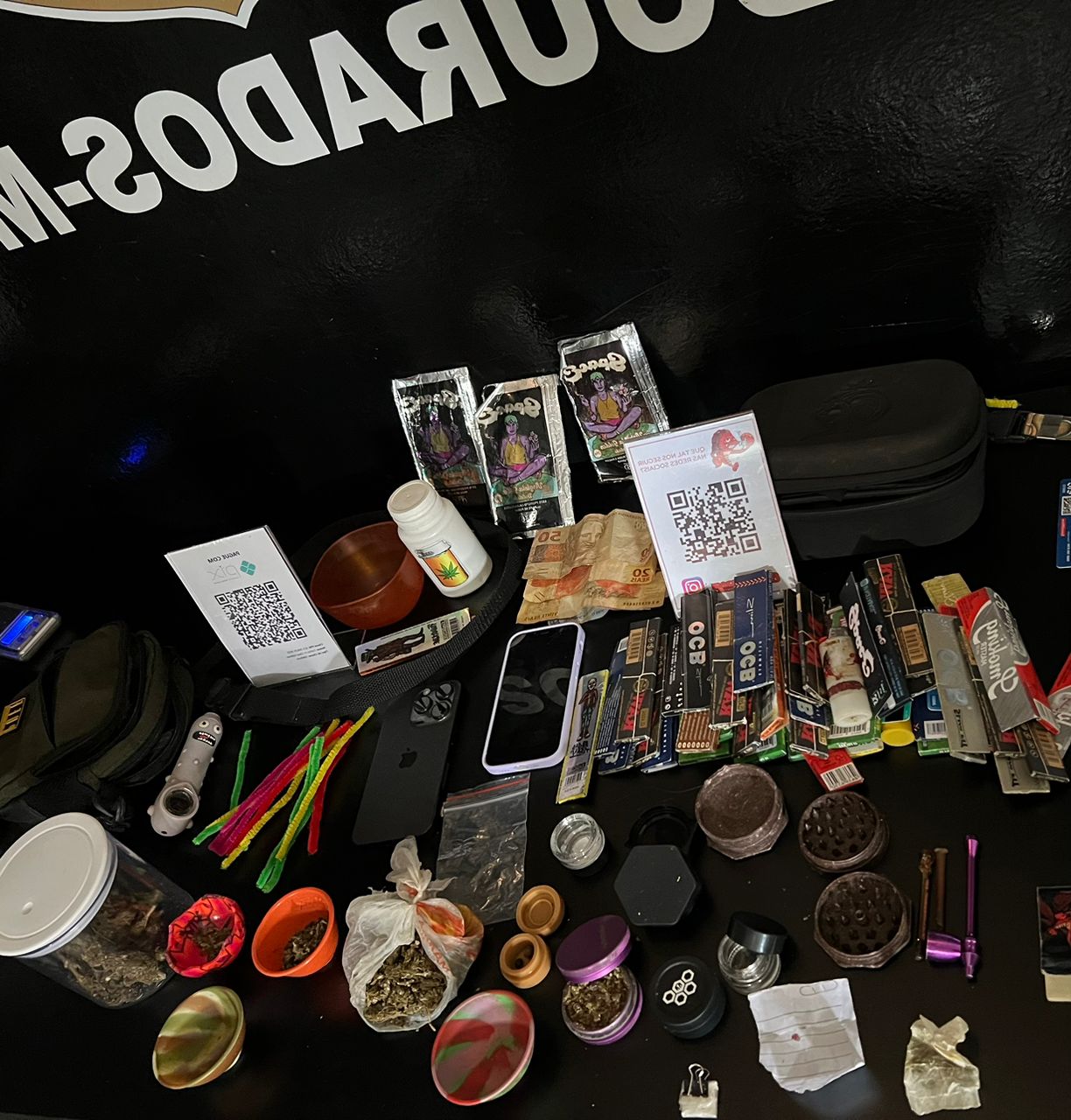 Durante o cumprimento da ordem judicial, os policiais civis localizaram 24.000 mg de maconha, papelotes de haxixe, e selos de LSD, além de mais de uma centena de objetos e instrumentos próprios para a comercialização de entorpecents. Também foram apreendidos dois aparelhos iPhones. O alvo principal foi conduzido à delegacia e autuado em flagrante por tráfico de Drogas.