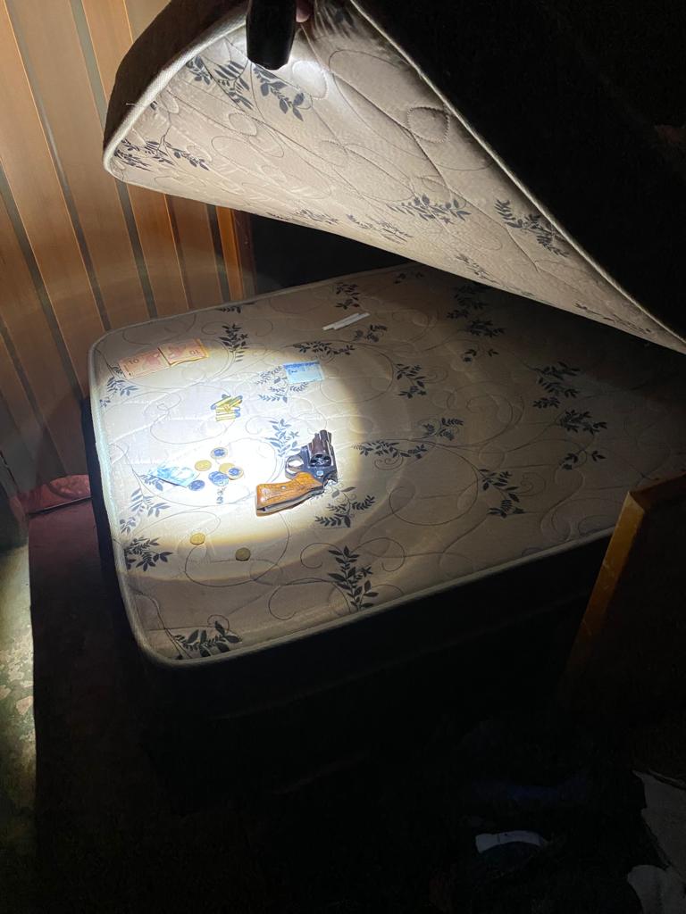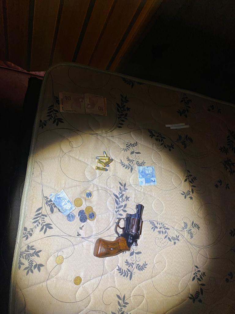 A arma, com capacidade para cinco tiros, estava escondida em baixo do colchão, com nove munições intactas. Diante disso, foi dada voz de prisão ao indivíduo por porte de arma de fogo de uso restrito e ele foi conduzido para a unidade policial, onde foi formalizado o flagrante.
