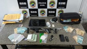 Diante dos indícios de que os garagistas estariam financiando o tráfico de drogas, foi realizada vistoria no escritório da empresa, sendo apreendidas em duas gavetas existentes na mesa de um dos proprietários, uma pistola Glock, calibre 9mm, e uma outra calibre 380, municiadas, além de considerável quantia em dinheiro.
