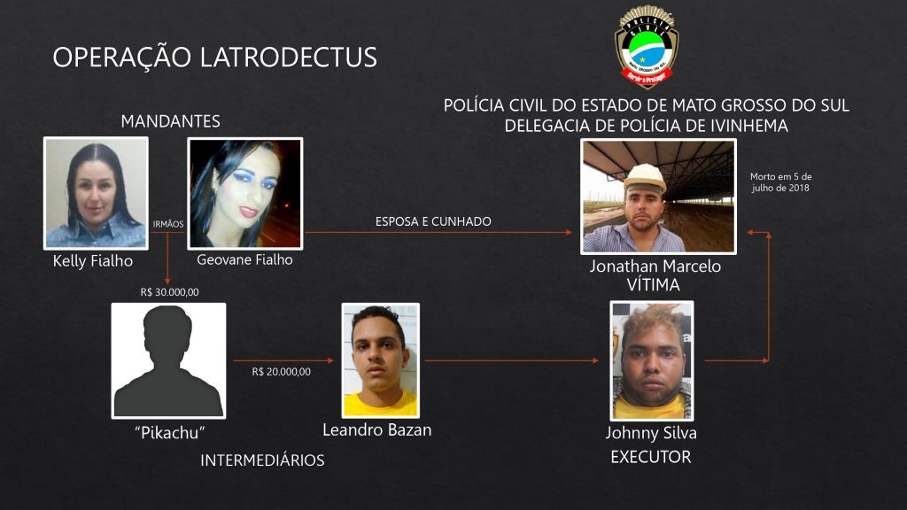 Ivinhema (MS): Na manhã desta quinta-feira (21) a Polícia Civil de Ivinhema deflagrou a Operação Latrodectus, que resultou na prisão de quatro envolvidos na morte do empresário Jonatahan Marcelo Fernandes, de 28 anos, proprietário da Serralheria Bom Jesus, em Ivinhema. Um quinto envolvido permanece foragido.