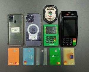 No início do mês de abril, a Polícia Civil tomou conhecimento de que os suspeitos haviam aportado na cidade, identificando vítimas de golpes através da análise criminal. Diante disso, foi deflagrada a Operação Policial na data de ontem e os suspeitos foram presos. Com eles, foram localizadas as maquinetas utilizadas para praticar os golpes.