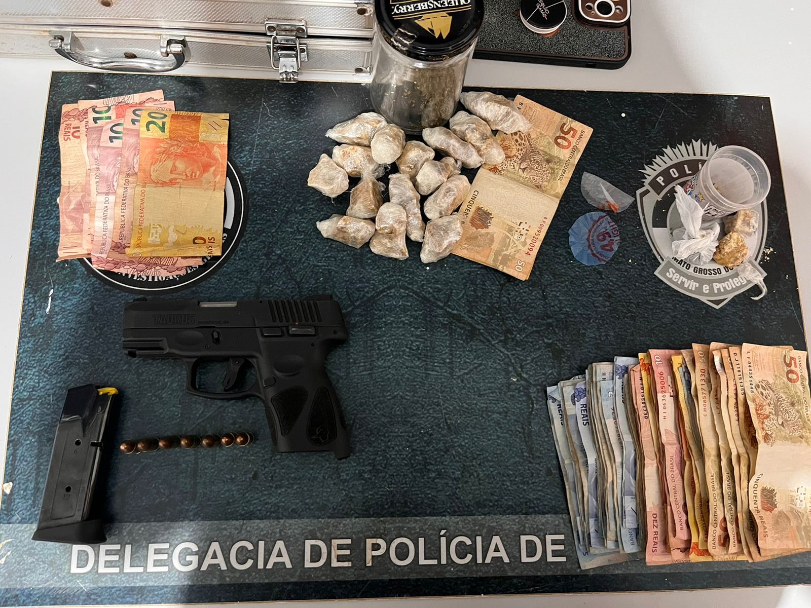 Durante cumprimento de Mandados de Busca e Apreensão para repressão ao Tráfico de Drogas, a Polícia Civil, com apoio da Policia Militar, prendeu em flagrante três indivíduos e apreendeu grande quantidade de drogas, arma de fogo e objetos furtados. A ação ocorreu durante a operação “Kathárisma” deflagrada na manhã desta quinta-feira, 08/12 em Maracaju-MS.