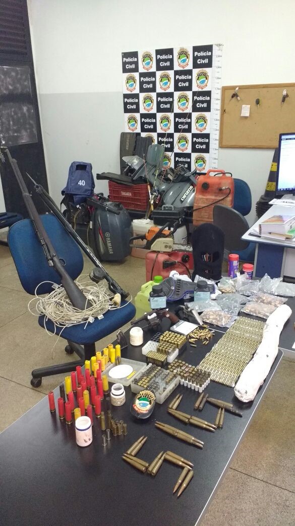 Também foram apreendidas três armas, sendo uma garrucha, um revólver e um fuzil. Os Investigadores destacam que o fuzil apreendido tem a capacidade de atingir com precisão um alvo localizado a 2.000 (dois mil) metros de distância bem como a capacidade de perfurar coletes a prova de balas e inclusive veículos blindados.