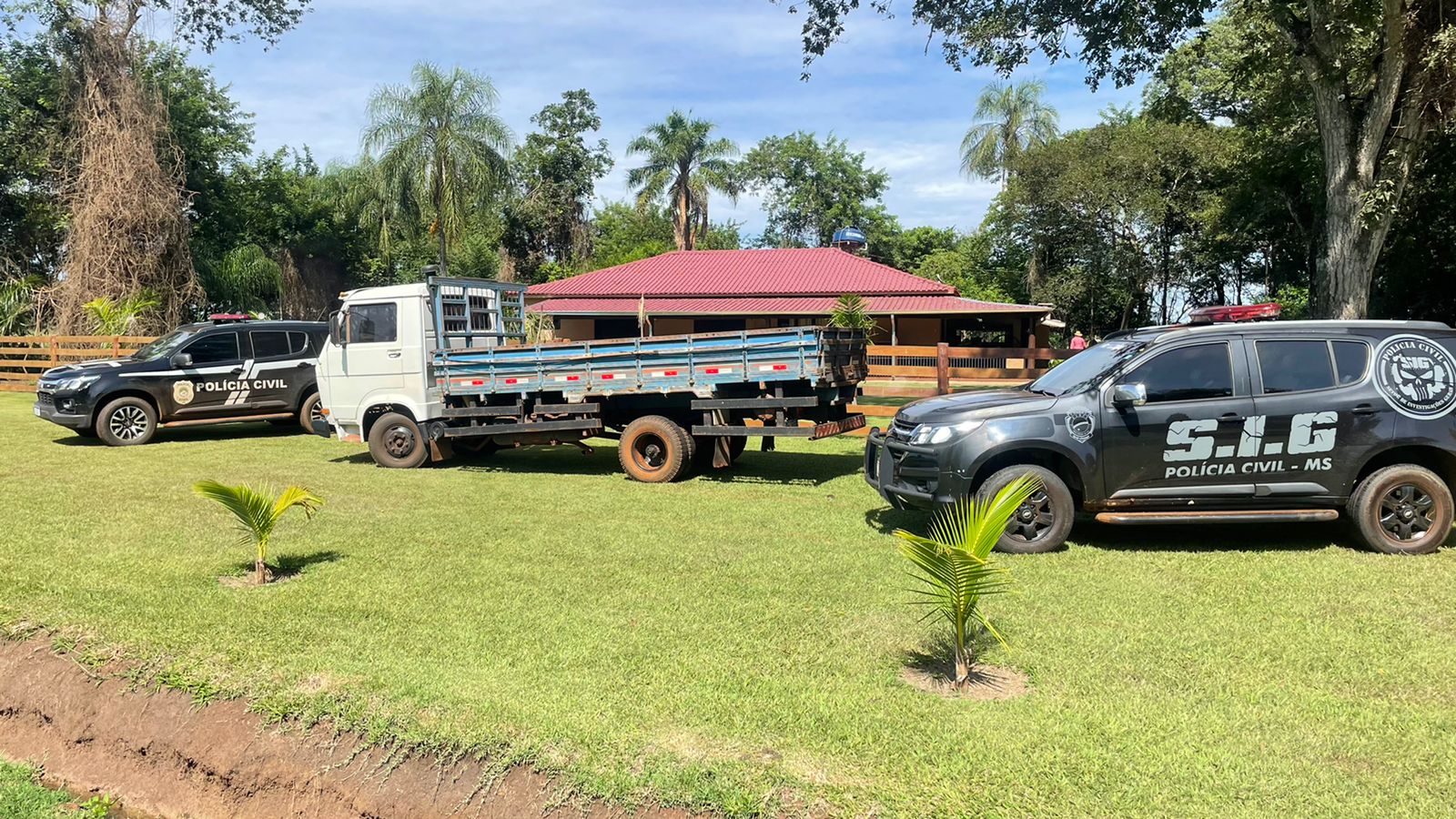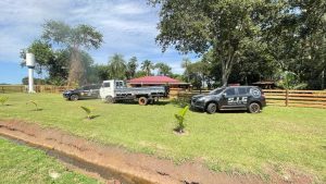 Na presente data, foram cumpridas duas buscas e apreensões, sendo uma numa loja de venda de veículos e outra na chácara do investigado. O veículo Toyota/Hilux, sob o qual paira suspeita de ser de E. A. F e que estava em nome de terceiro, foi localizado e apreendido. Na chácara, residência do investigado e de sua esposa, foi localizado um caminhão VW/7.90 S C E., em nome de E. A. F, e alguns documentos localizados no interior da casa, que também foram apreendidos.